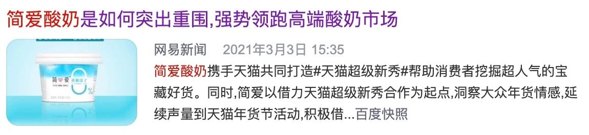 牛年春节期间,简爱酸奶在电商渠道热销